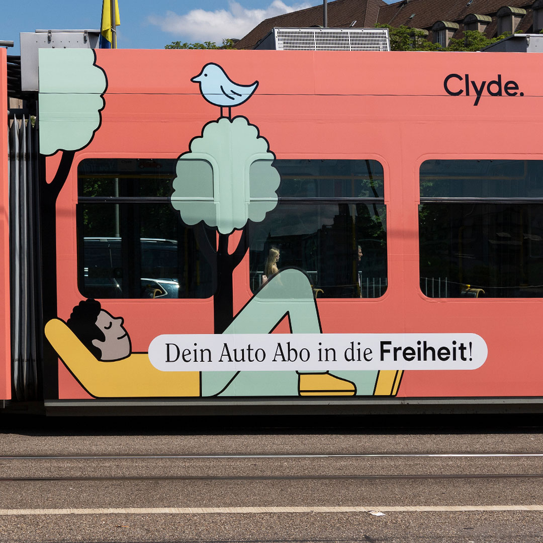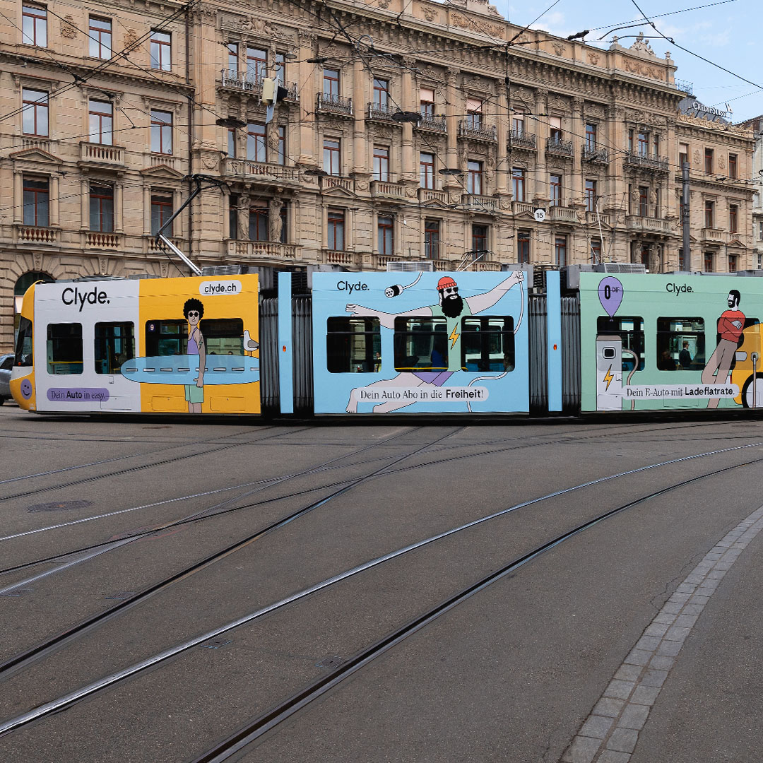 Tram in the city of Zürich for Clyde Car Sharing