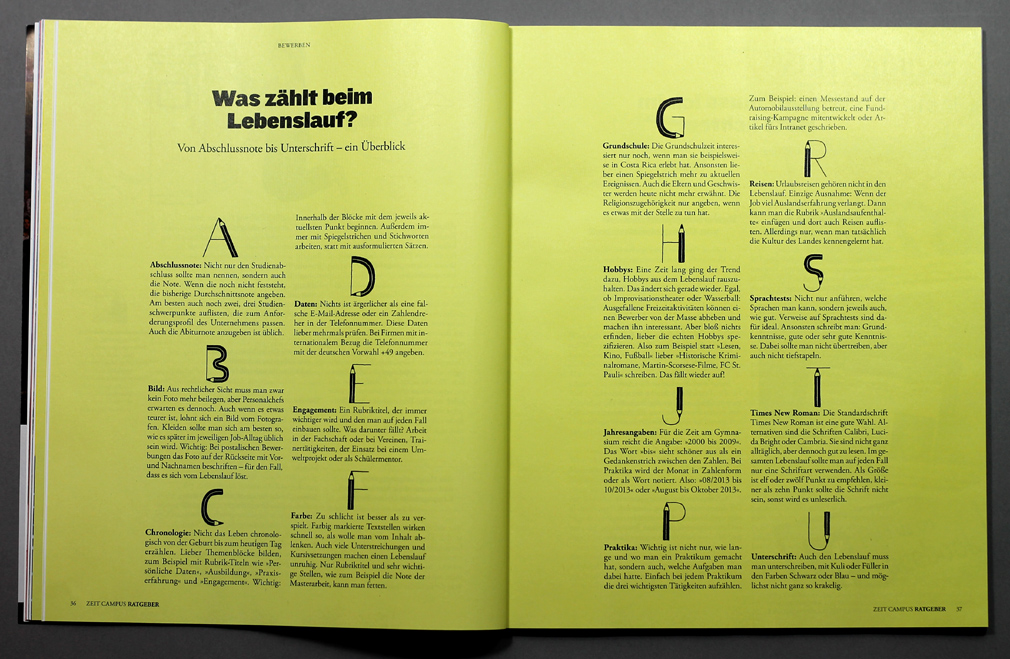 I entirely illustrated the Zeit Campus Ratgeber Berufseinstieg 2015, a guidebook for the career entry
